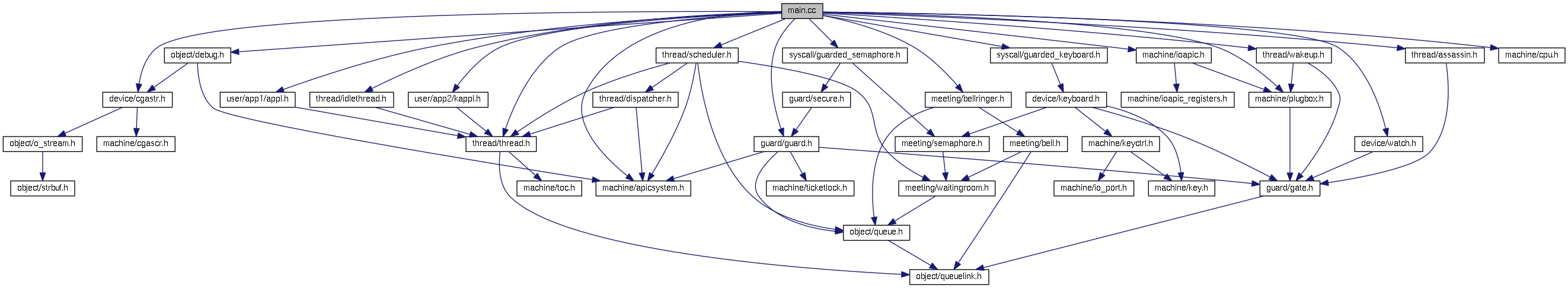 #include "machine/apicsystem.h"#include "device/cgastr.h"#include "object/debug.h"#include "user/app1/appl.h"#include "user/app2/kappl.h"#include "machine/ioapic.h"#include "machine/cpu.h"#include "machine/plugbox.h"#include "syscall/guarded_keyboard.h"#include "guard/guard.h"#include "thread/scheduler.h"#include "thread/thread.h"#include "device/watch.h"#include "thread/assassin.h"#include "meeting/bellringer.h"#include "thread/idlethread.h"#include "thread/wakeup.h"#include "syscall/guarded_semaphore.h"